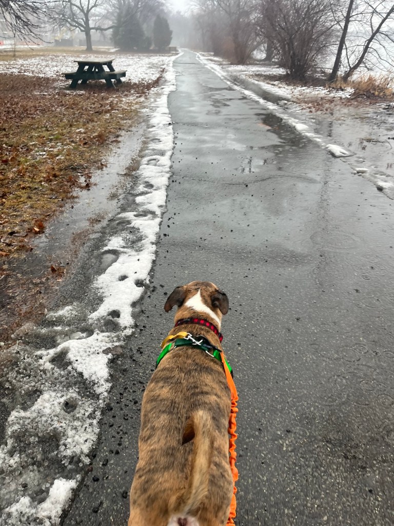 Most mornings, my running buddy trots along beside me, completely delighted that we’re out there at all. He doesn’t care how far we’re going. He doesn’t know whether we’re “training” or just jogging through another quiet morning. He is just happy: